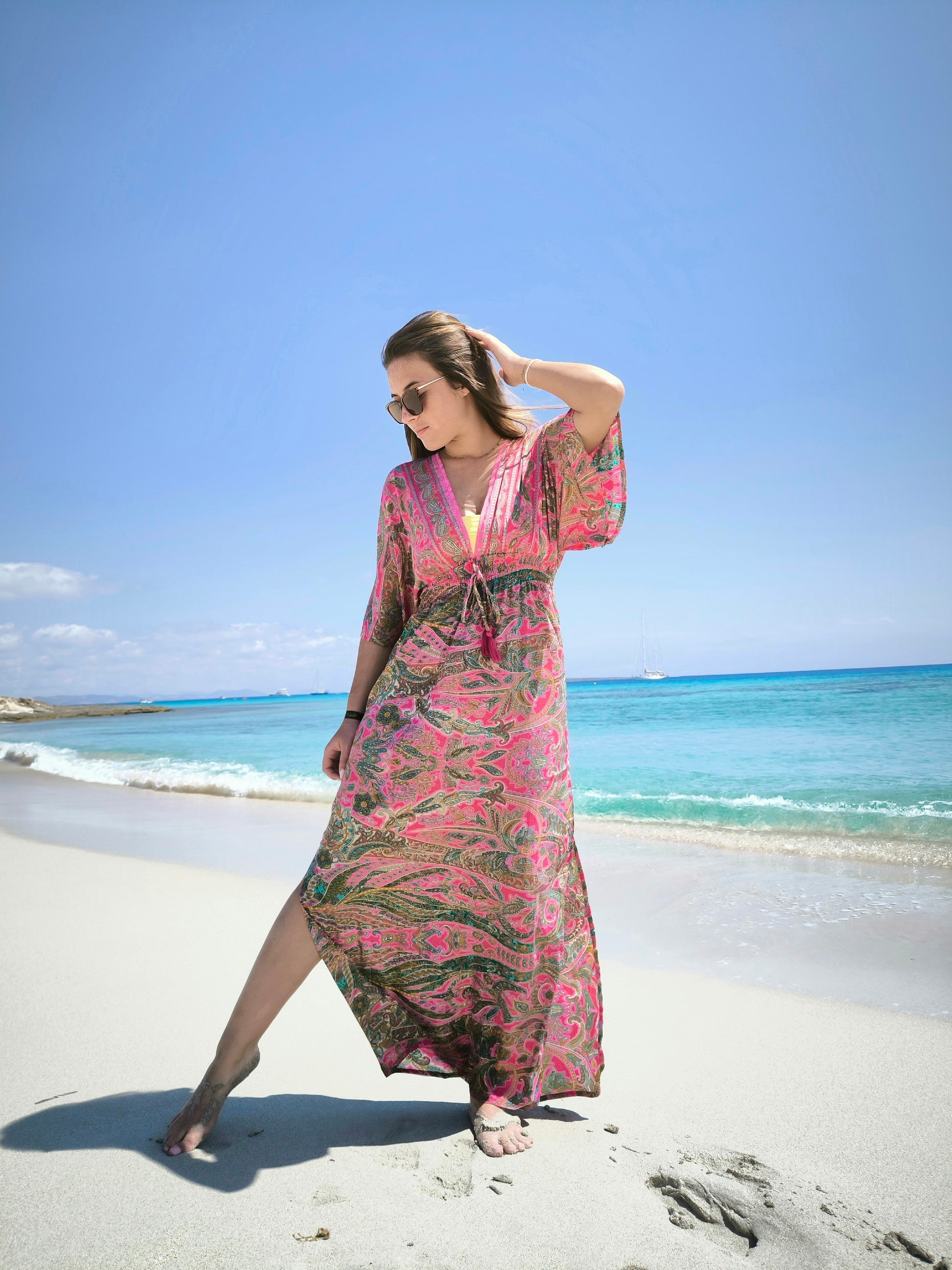 ✓ فستان طويل بلمسة من الحرير، ملون،